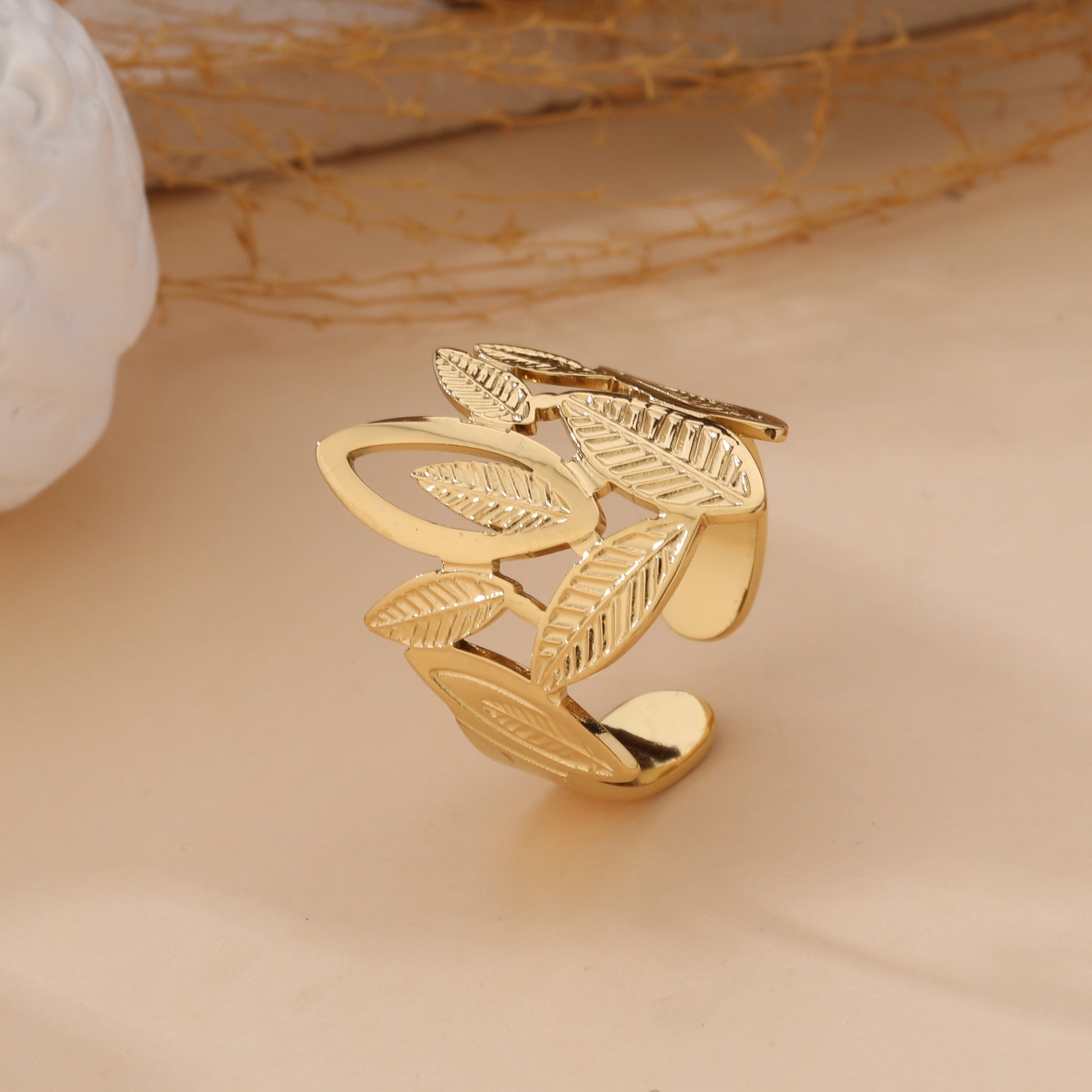 Bague feuilles en Acier Inoxydable Doré – Élégante et Durable