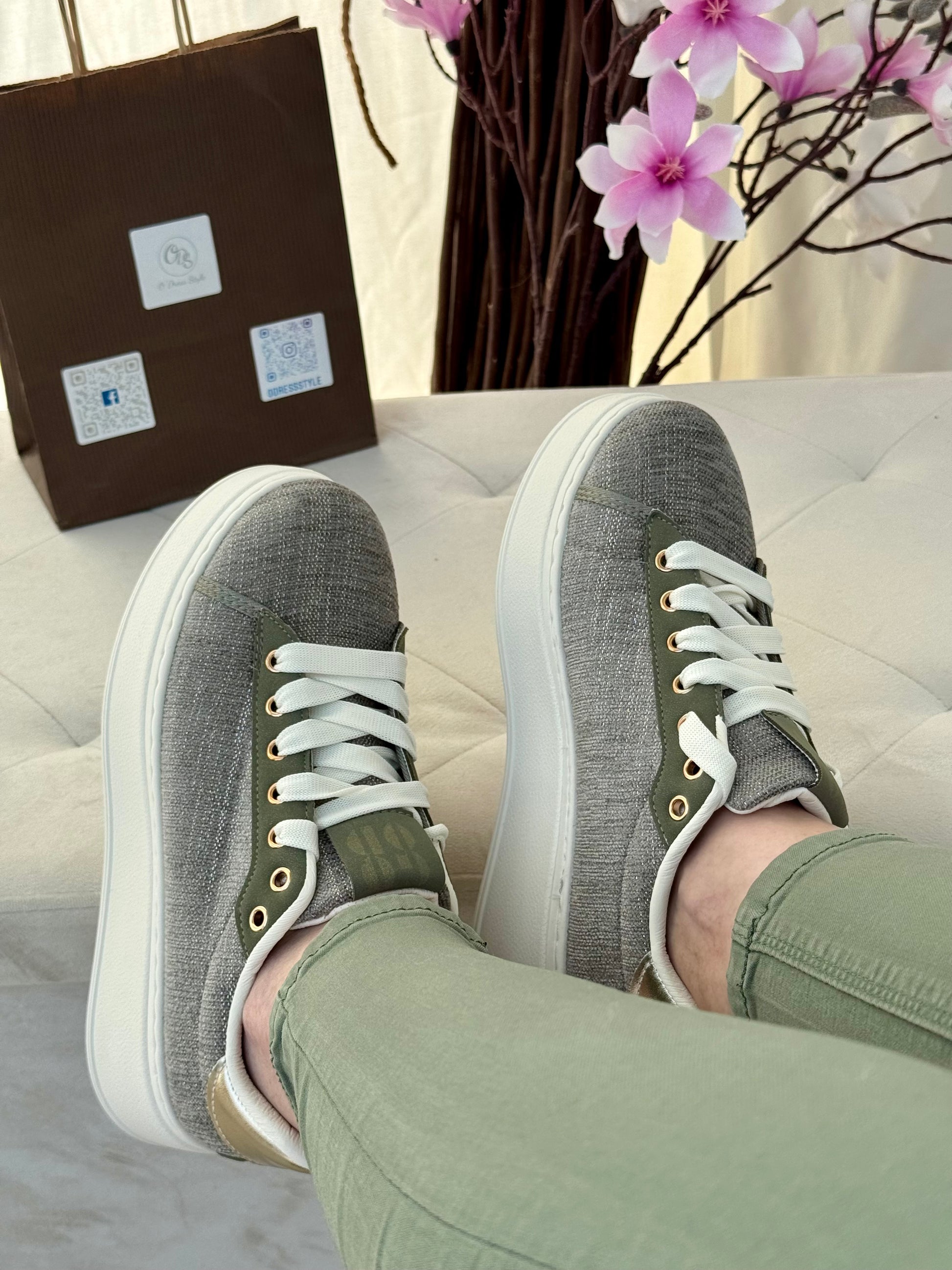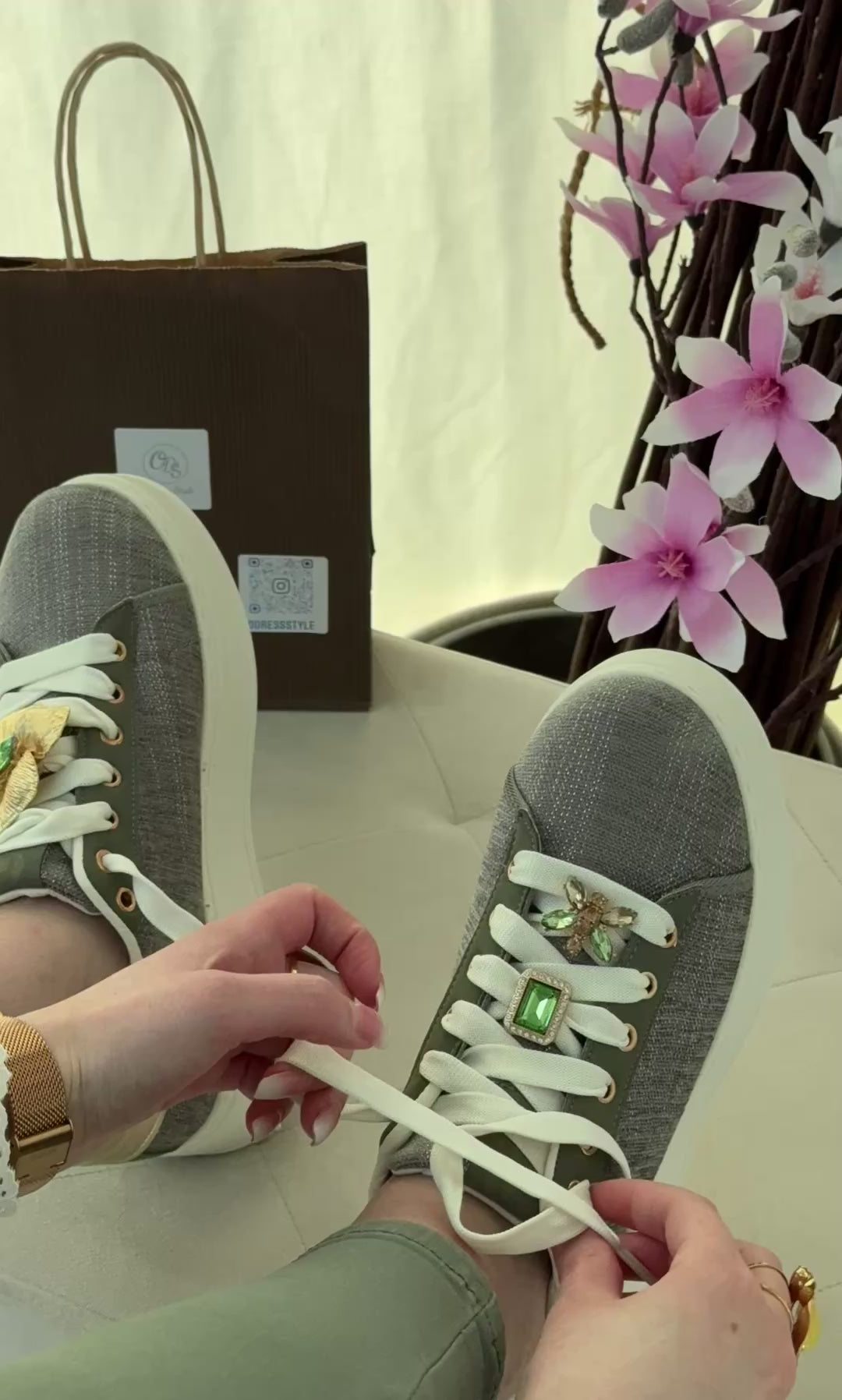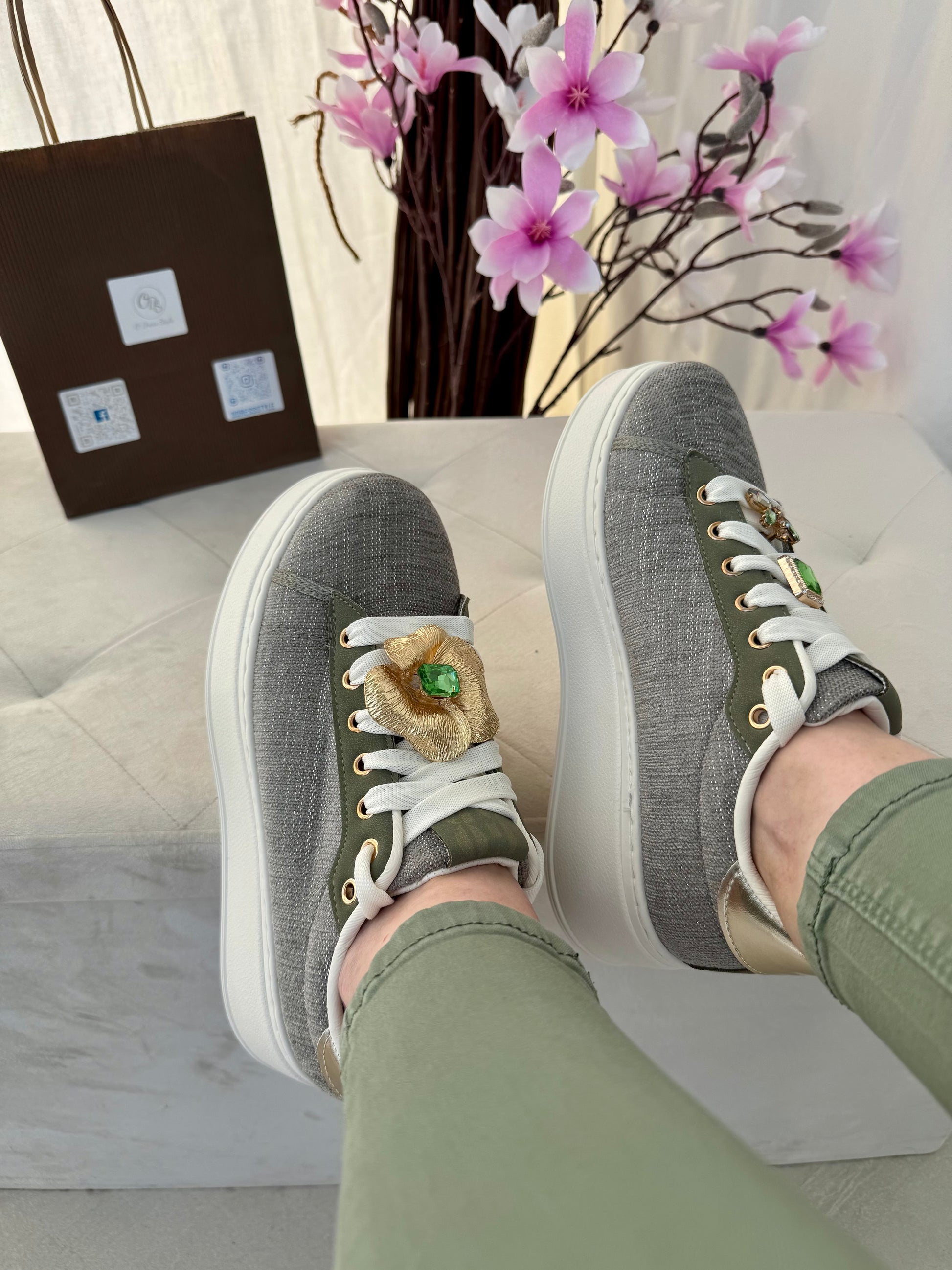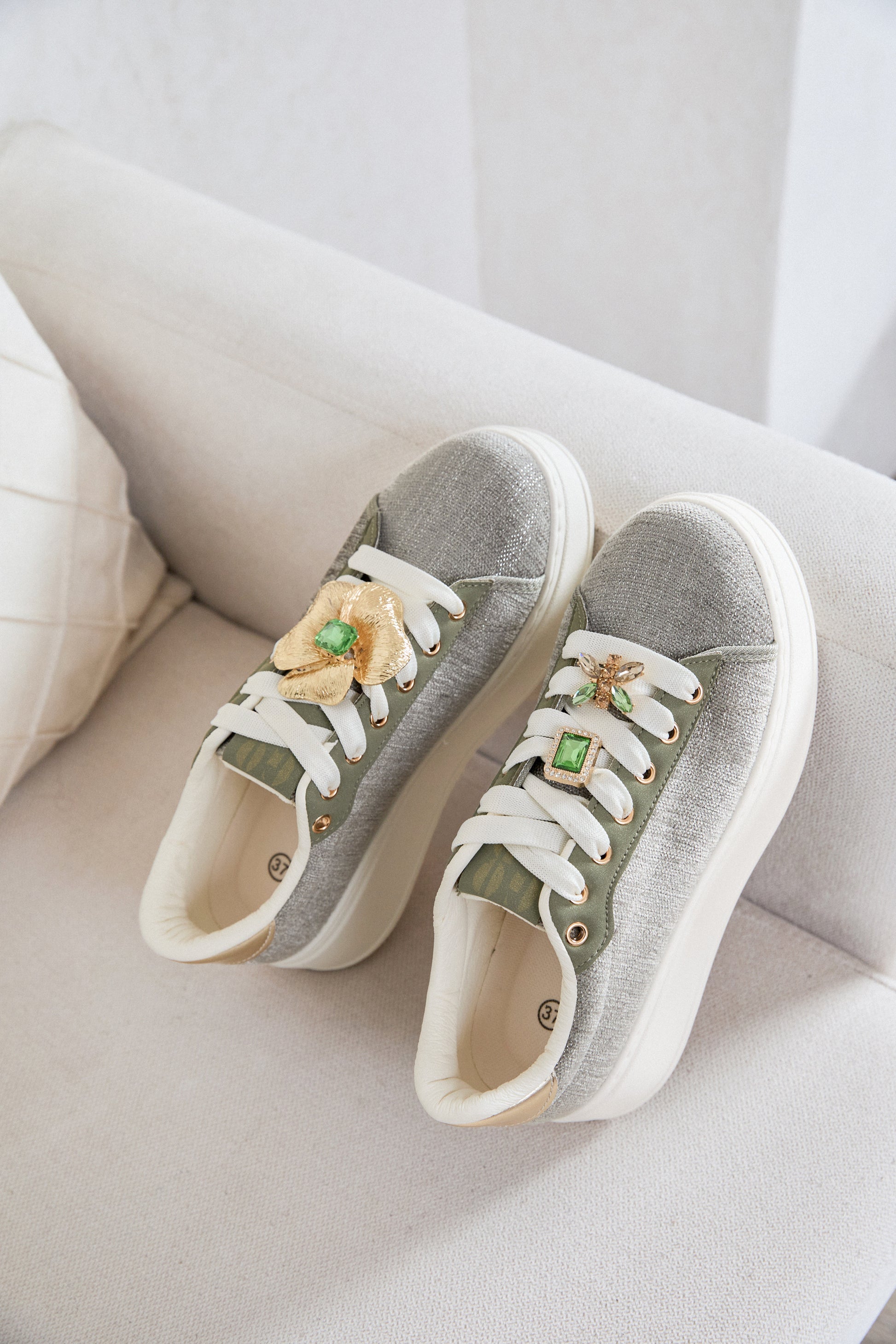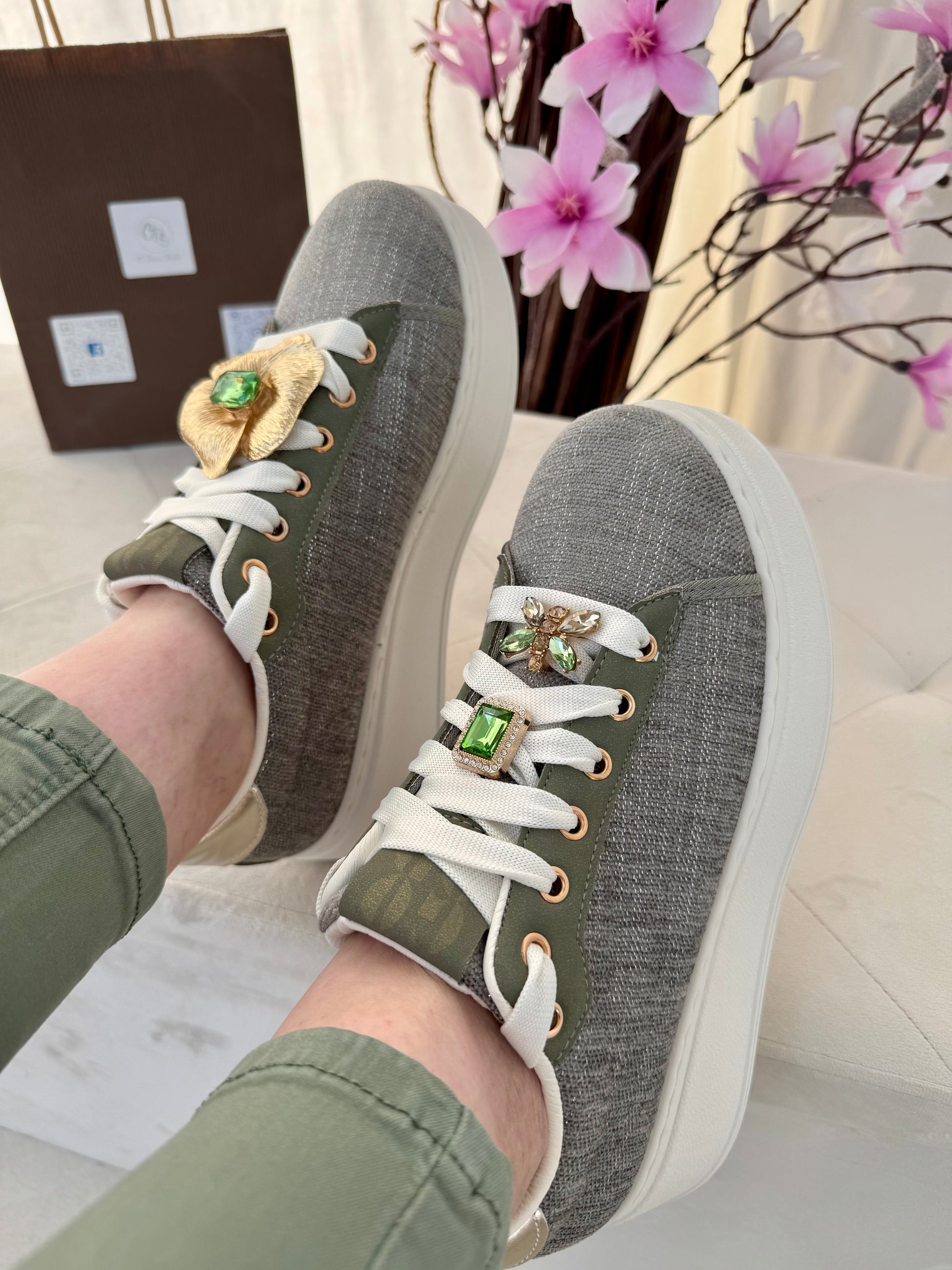 Sneakers kaki femme avec bijoux amovibles – Tendance printemps