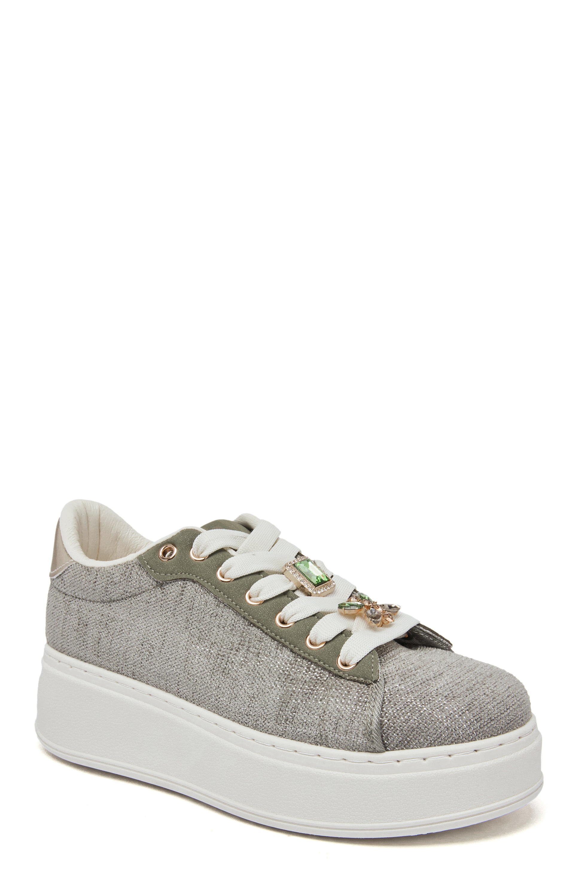 Craquez pour ces sneakers kaki femme ornées de bijoux amovibles, parfaites pour apporter une touche originale et féminine à vos looks de saison.