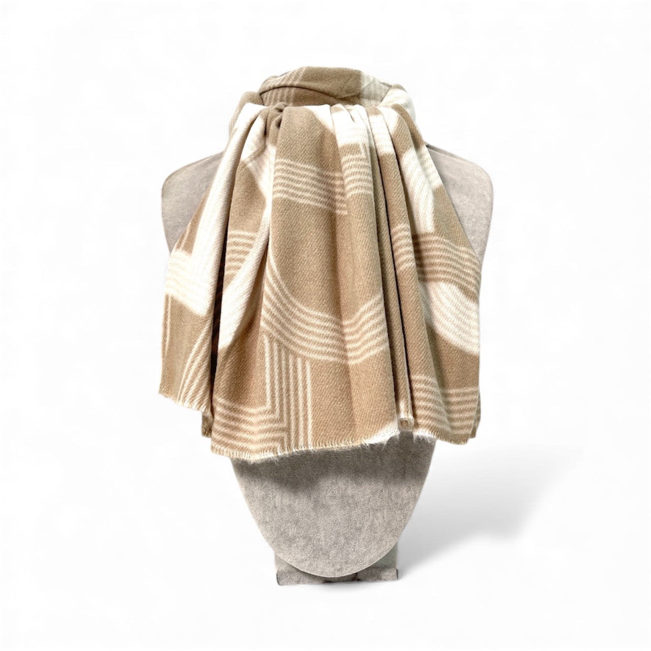 Son motif moderne dans des tons beiges et écrus apporte une touche chic et lumineuse à n’importe quelle tenue. Polyvalente et tendance, elle se porte aussi bien sur un manteau élégant qu’avec une tenue plus décontractée.
