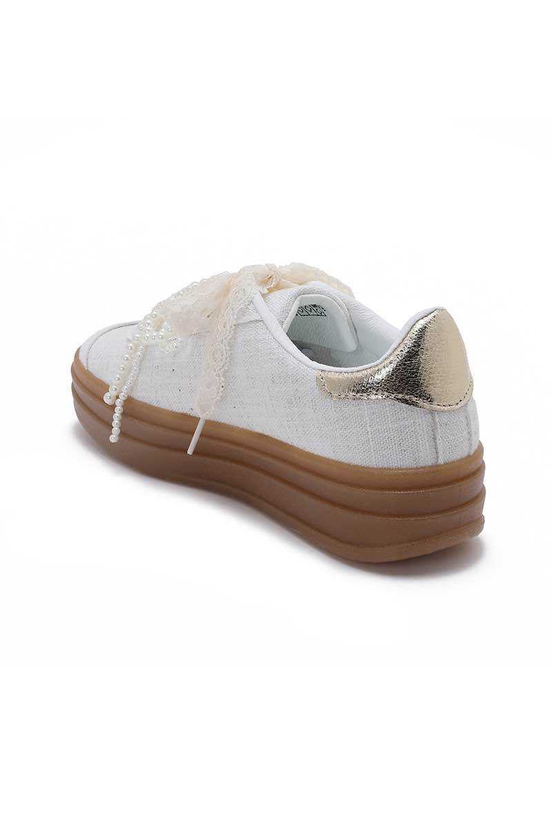 ✔ Basket femme élégante et originale ✔ Détail perlé tendance ✔ Couleur écru facile à assortir ✔ Look casual chic affirmé