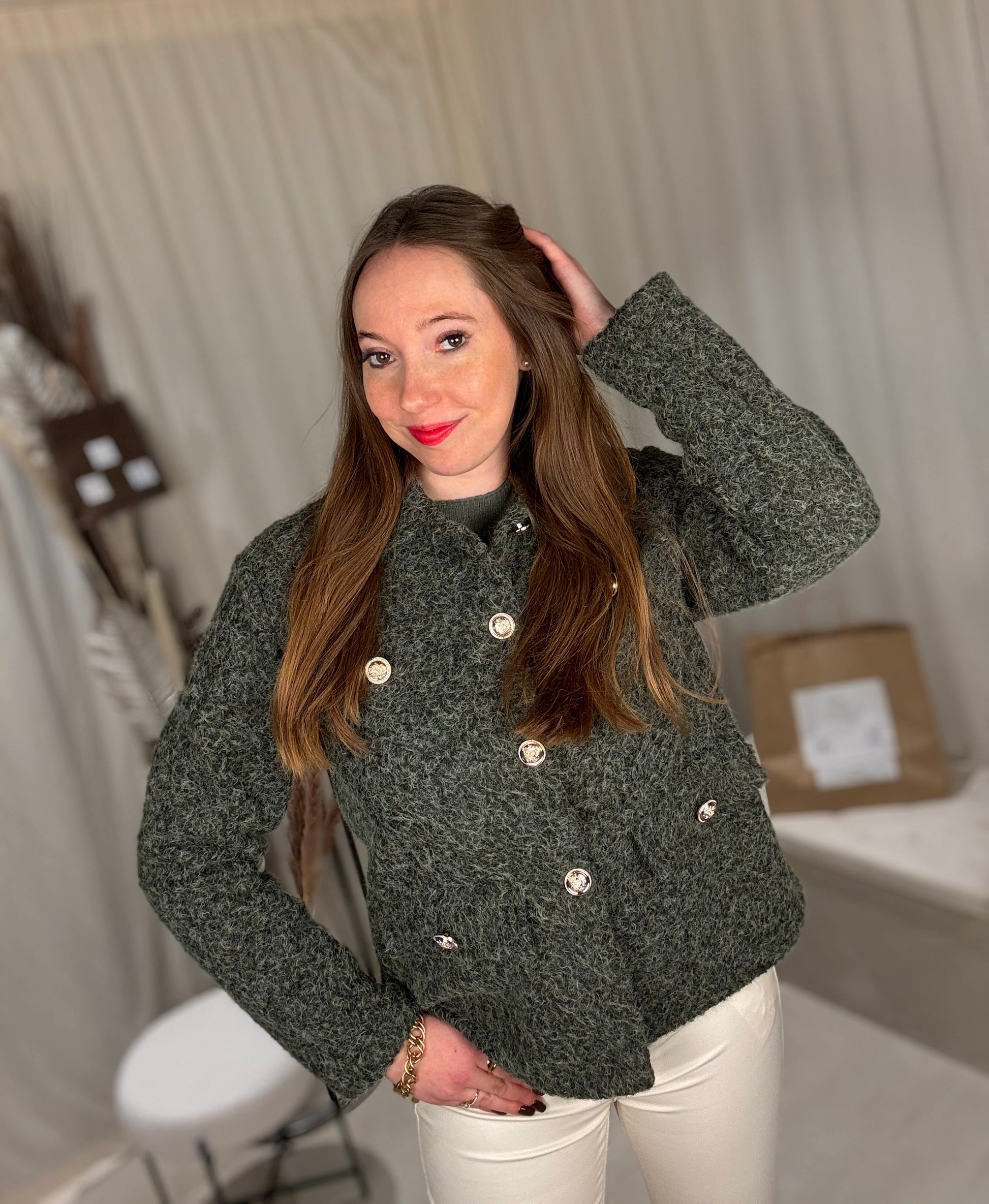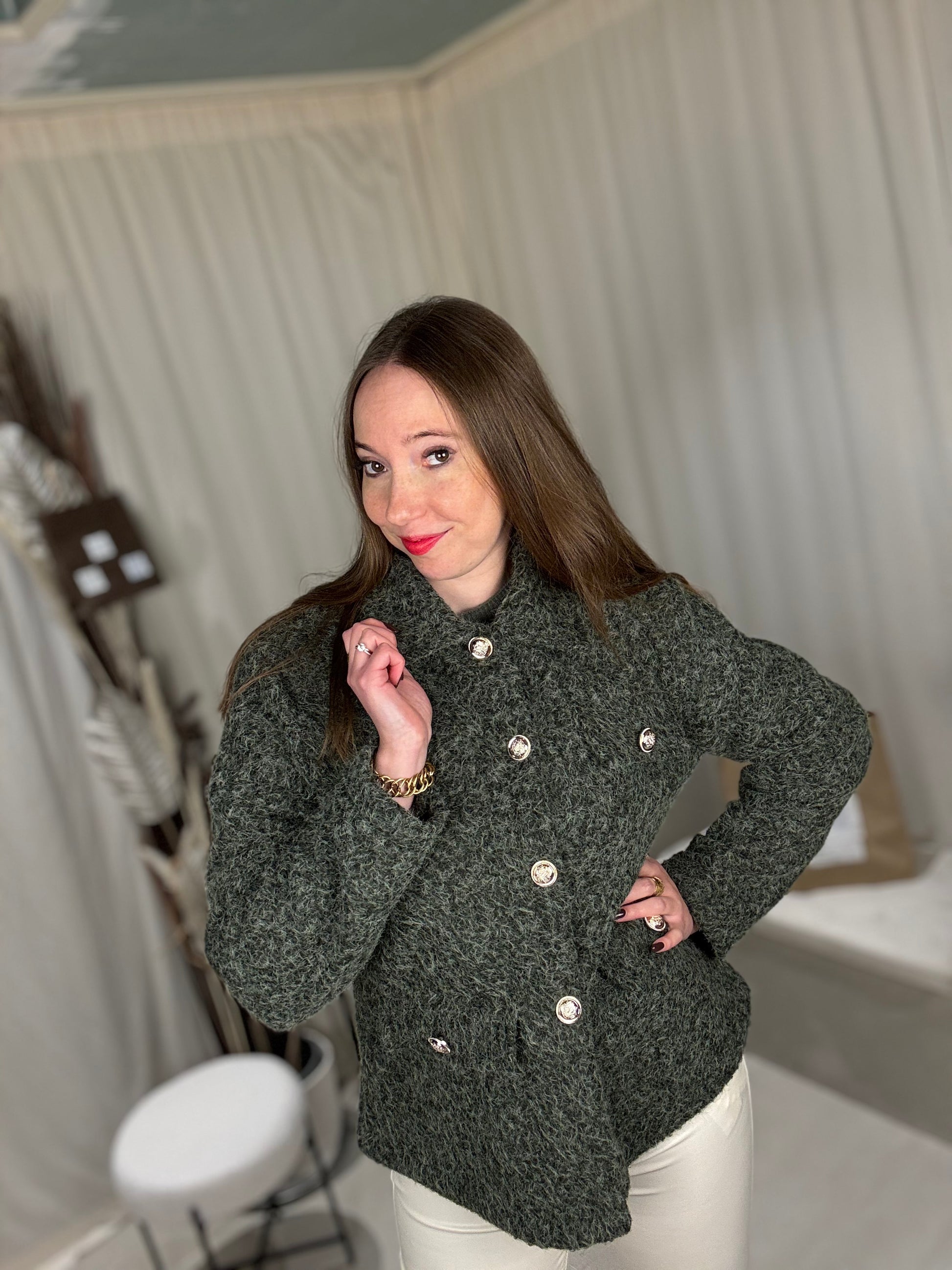 Adoptez une allure élégante et affirmée avec notre veste style officier en feutrine, un indispensable de la mi-saison. Conçue dans une matière douce et légèrement chaude, elle est idéale pour vous accompagner lors des moments les plus frais tout en apportissant une touche chic et structurée à votre tenue.
